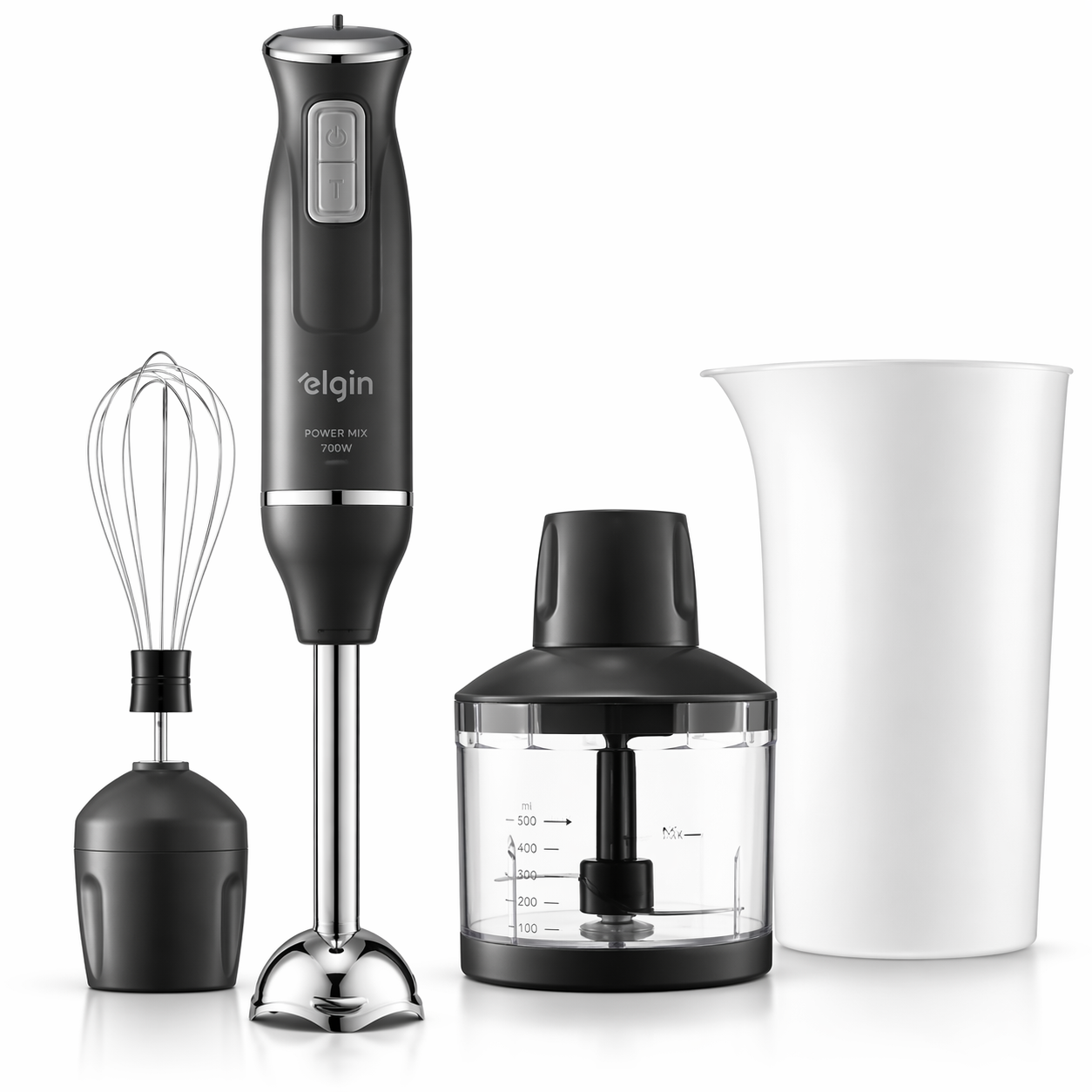 Acompanha haste trituradora, fouet, processador 400ml e copo dosador 700ml. Tudo o que você precisa em uma única caixa.